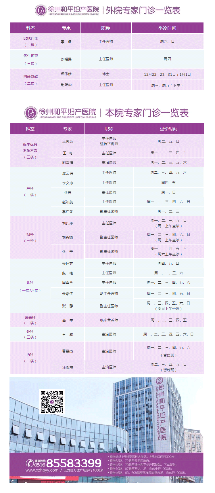 徐州和平妇产医院2020年11月16日—11月22日专家坐诊时间表,有需要的亲,赶紧预约哦~~