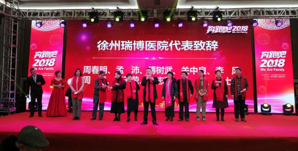 锦鸡辞岁去,玉犬吠春来。2月6日晚上七点,江苏瑞博医疗集团在徐州全季酒店举办“奔跑吧 2018 We are family”集团年会盛典暨总结表彰大会。集团下属的和平医院、瑞博医院、百汇医院三家医院的院领导班子成员、各部门员工、离退休职工代表、优秀职工家属等600余人欢聚一堂,共享文艺盛宴,迎接新年的到来。