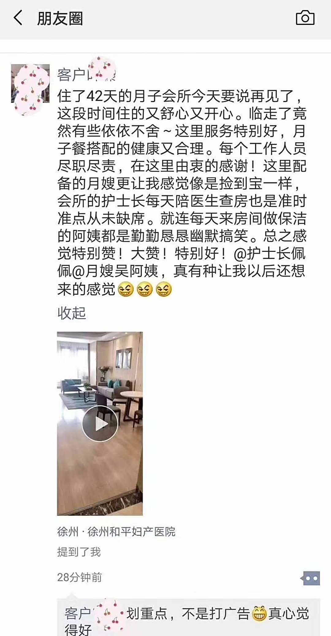 和平医疗级月子公寓的成长离不开每位宝妈的支持,