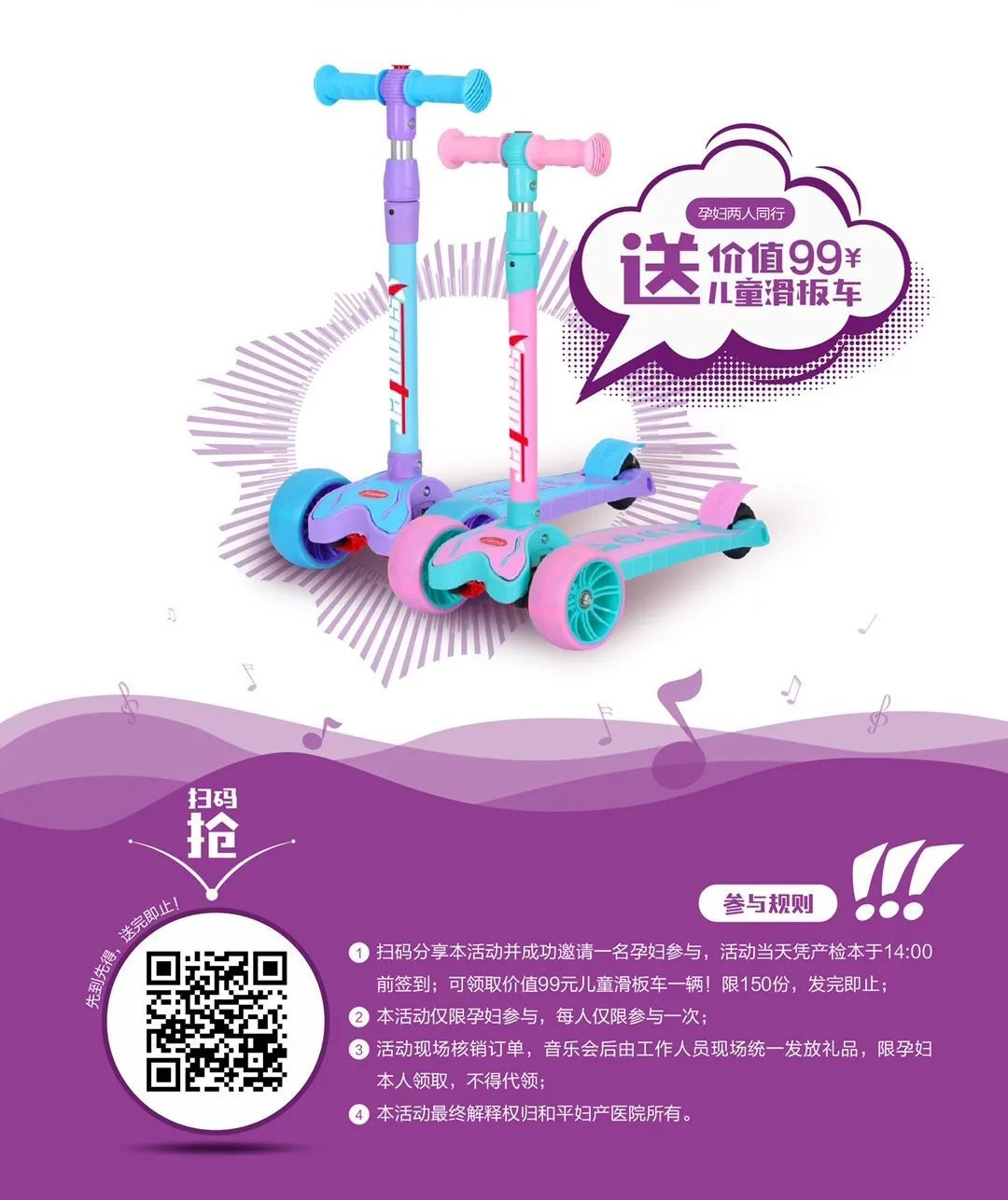 准妈妈参与线上0.01元秒杀音乐会门票及价值219元母婴大礼包,现场凭小程序核销码作为音乐会入场及礼品领取凭证,数量有限,报名从速哦!