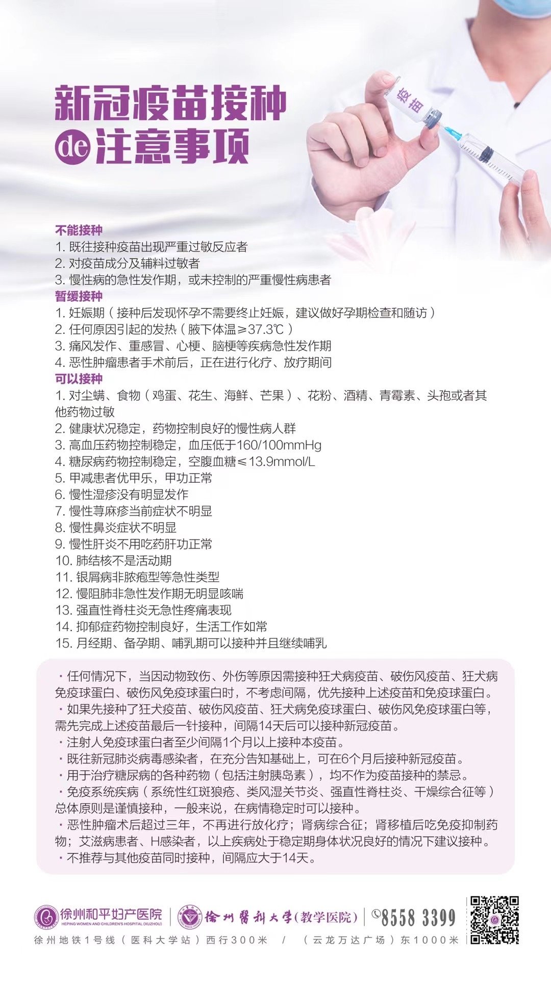 接种地点徐州和平妇产医院1楼新冠疫苗预防接种室(请从医院东门进入)