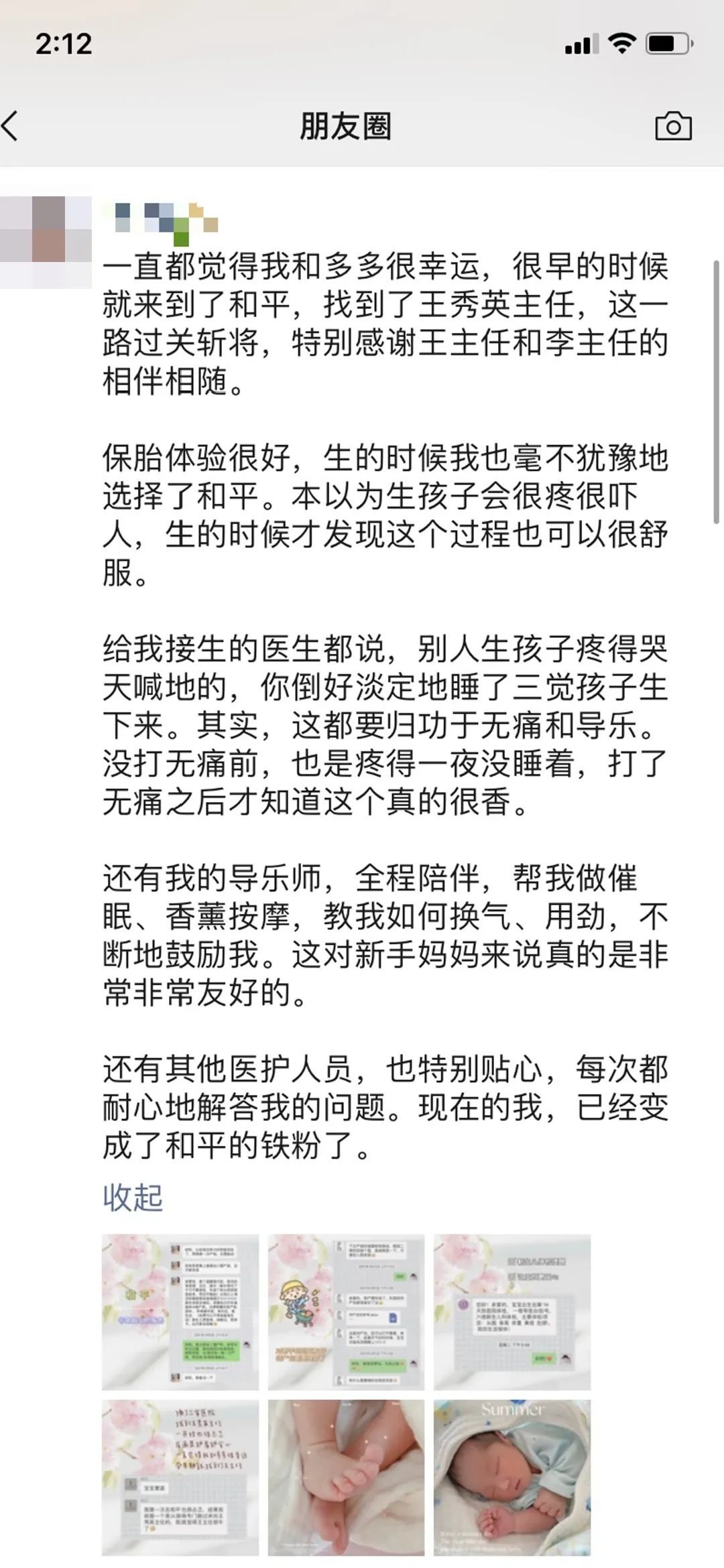 从家到医院,从见红到顺利生产,分娩全程就是一场有爱的接力,导乐师全程陪伴、麻醉医生随叫随到、助产士努力保护产道避免侧切、月嫂对宝妈和宝宝悉心呵护无微不至……用宝妈的话来说,“光是生产的体验已经满足了”